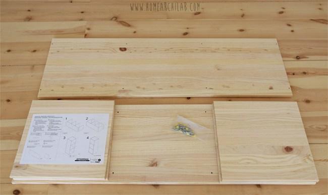 En cada pack viene todo lo necesario: tablas con los agujeros hechos, tornillos e instrucciones. Aunque montado el primero, el resto son igual así que no necesité estar pendiente de las instrucciones.