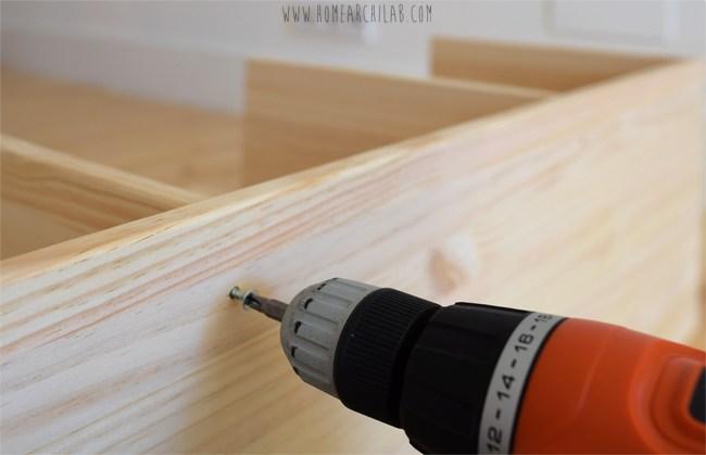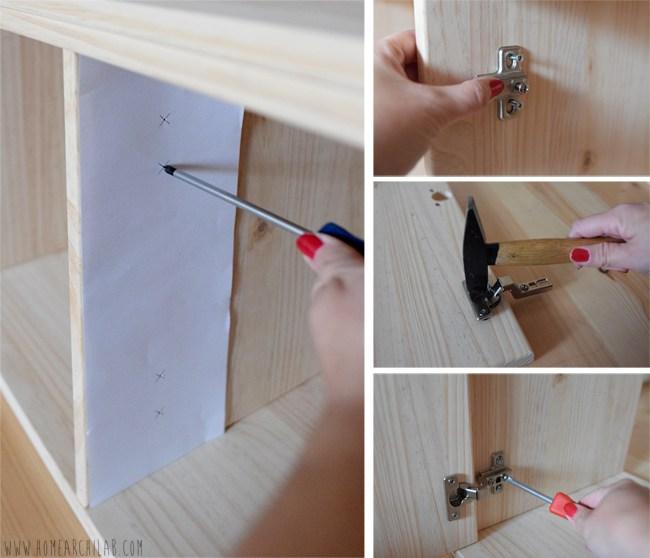 En cada agujero, introduces y atornillas cada uno de ellos.