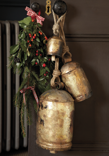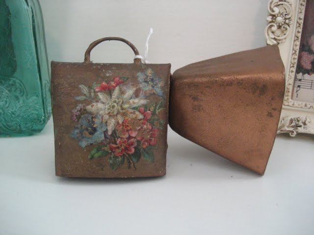 Una tarde de Septiembre de hará unos tres años, íbamos las dos dando nuestra caminata diaria a paso ligero por un camino diferente al habitual. Al cruzar por uno de los puentes de nuestra ciudad, vimos cómo un grupo de jovencitas se tiraban desde un pantalán del río al agua. No pudimos por menos que comentar la locura que hacían, estando prohibido el baño en el Guadalquivir a su paso por Sevilla, no sólo por la contaminación, sino también por los peligros que encierra su fondo. Pero hete aquí que, cuando nos fijamos bien, distinguimos entre el grupo ¡a nuestras hijas! No hay pulmón en el mundo que soportara los gritos que comenzamos a dar a la voz de ¡¡¡¡¡JULIA!!!!! (menos mal que los alaridos llevaban el mismo nombre...) A los gritos, los acompañaba el movimiento compulsivo de nuestros brazos para llamar su atención. Tanto chillamos y nos contorsionamos que, a pesar de la distancia y la altura considerable en la que nos encontrábamos, las niñas se enteraron y nos vieron... Os podéis imaginar la carita que se les quedó a las dos. ¡A CASA!, ¡A CASA!, ¡A CASA!, continuábamos las dos como posesas (todo el glamour y la compostura perdidos en un segundo), en medio de transeúntes y coches que nos miraban como si estuviéramos cual dos cencerros... Así que hoy nos vamos a dedicar este post a nosotras, por el mal trago que nos hicieron pasar, y a los cencerros, ¡elemento con el cual jamás imaginamos decorar!