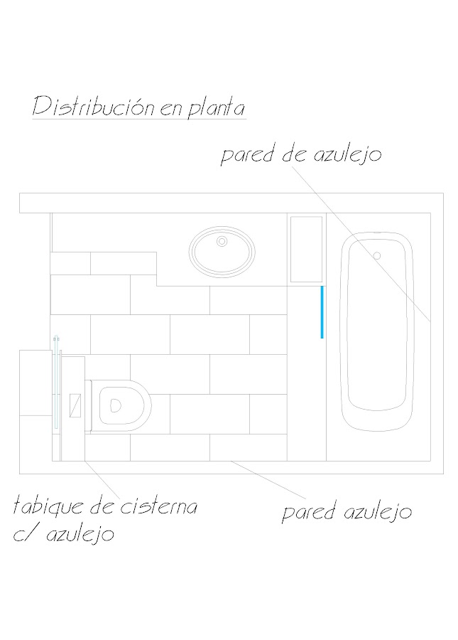 Por ejemplo, en este caso, mi cliente necesitaba reformar el cuarto de baño de su dormitorio. Tenía claro que quería bañera en vez de plato de ducha y le apetecía mucho colocar las piezas suspendidas, por estética ya que teniendo en cuenta el tamaño de los baños que se construyen hoy en día, este tipo de piezas aligeran mucho los espacios, y no te da la sensación de agobio aunque entres en uno pequeño; y por comodidad ya que al no llegar hasta el suelo, es mucho más fácil a la hora de la limpieza.