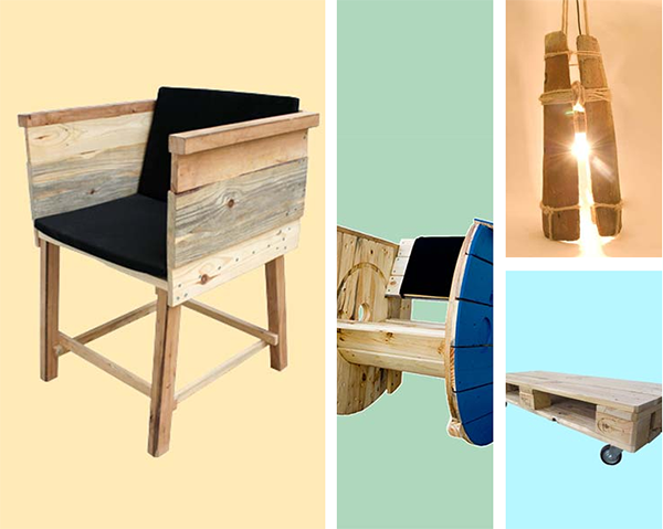 Mesa de palés, mecedoras, lámparas, un centenar de objetos que en su origen eran para otra cosa y ahora se han convertido en pequeñas obras de arte e ingenio y sostenibles.