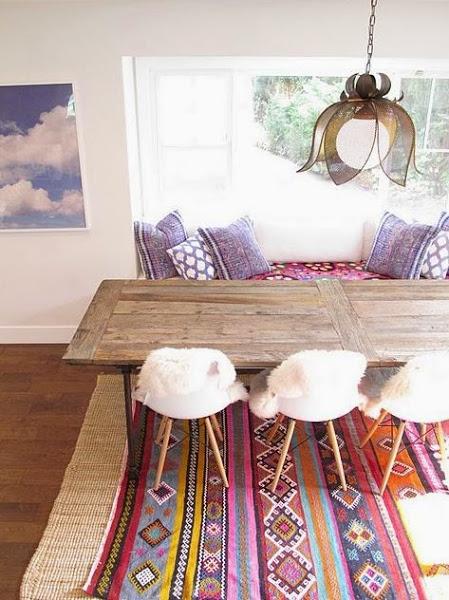 Precisamente una de las asesorías que realicé hace tiempo invitaba a decorar el hogar con este estilo. El motivo era el exceso del elemento tierra que pedía a gritos unos toques del elemento fuego en la decoración: tonos rojos/rosados/púrpuras/violetas; velas; cojines bereberes; alfombras con dibujos...