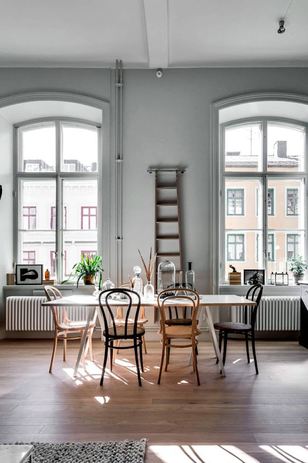 3/ En la decoración escandinava es muy típico tener un elemento protagonista. Suele ser algo que no nos esperamos, pero que le da ese toque "wow" al conjunto. Quizá una escañera como la de la imagen??