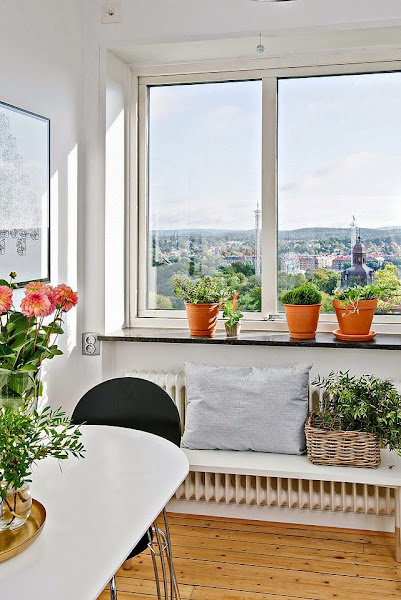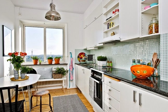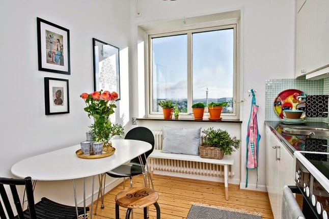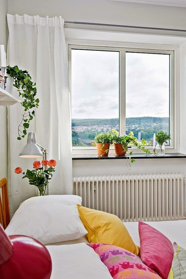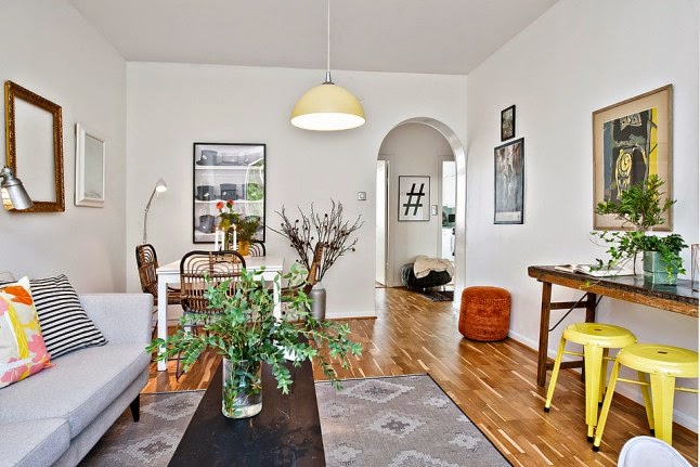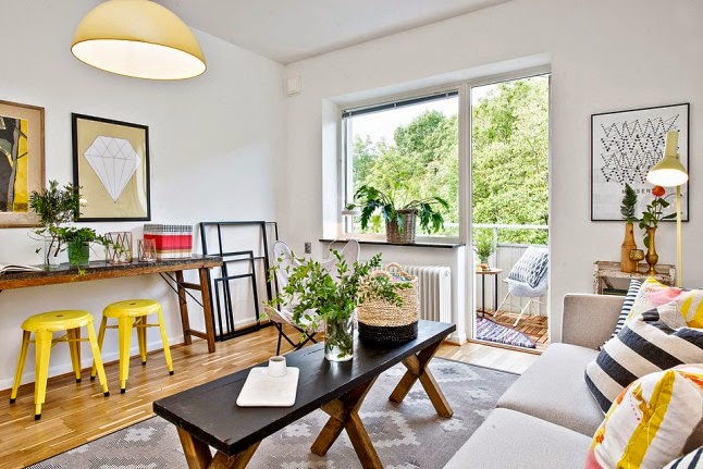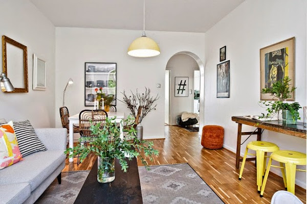 Este apartamento de estilo escandinavo nos demuestra que el color y la alegría no esta reñida con el diseño. Amarillos, naranjas, corales, rosas.......inundan los espacios de buen gusto y optimismo.