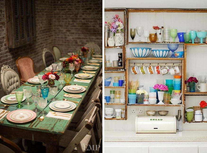 3.- En la mesa mezclad varios tipo de vajillas y cristalerías entre sí, porcelana china, copas de cristal de bohemia, piezas de estilo escandinavo, vasos con filigranas de estilo marroquí, todo vale… Tanto en la mesa como en el resto de la habitación, cread una iluminación indirecta y tenue con velas, lámparas de papel y farolillos de todo tipo, de esta manera conseguiréis un ambiente romántico que incite a la calma y al relax. Vestídla con manteles bordados y decorádla con pequeños ramilletes de flores silvestres y tendréis el éxito asegurado.