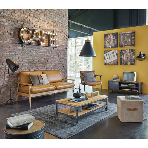 La composición que han creado para enseñarnos es mueble no puede ser más ideal. La pared es un tandem perfecto para contrastar con el metal, al igual que el cuero de la silla y darle un toque más cálido a lo industrial que en ocasiones puede llegar a ser una deco un tanto fría.