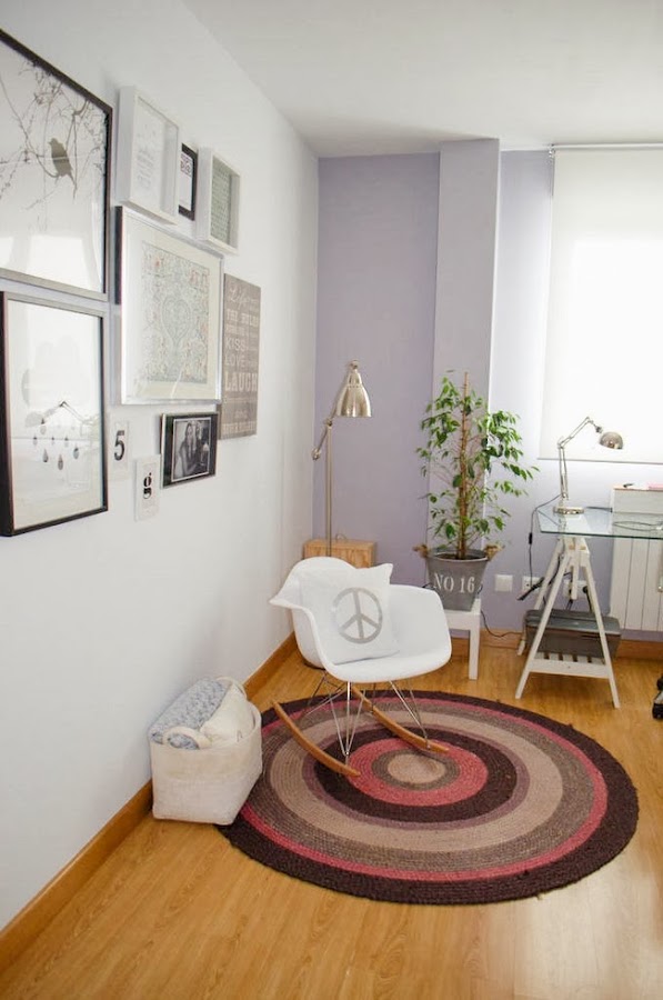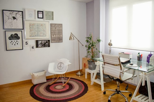 El despacho sin duda esta pensado hasta el mas mínimo detalle, almacenaje, zona de trabajo y decoración de pared con rincón de lectura, no es por nada pero el cojín de la mecedora es precioso ¿os suena? clic