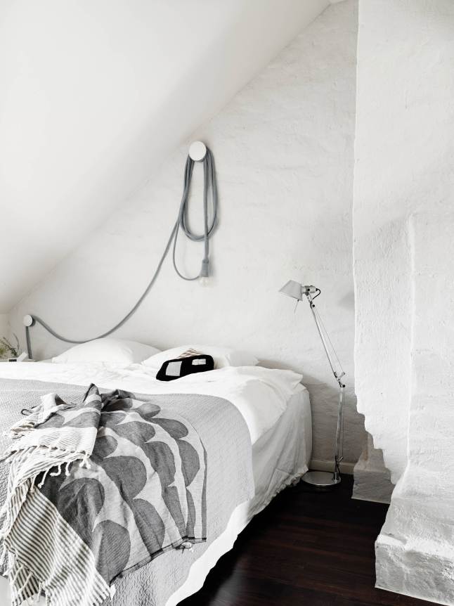 El dormitorio de lo más sencillo, con esa arquitectura no necesita más, transmite paz y tranquilidad.