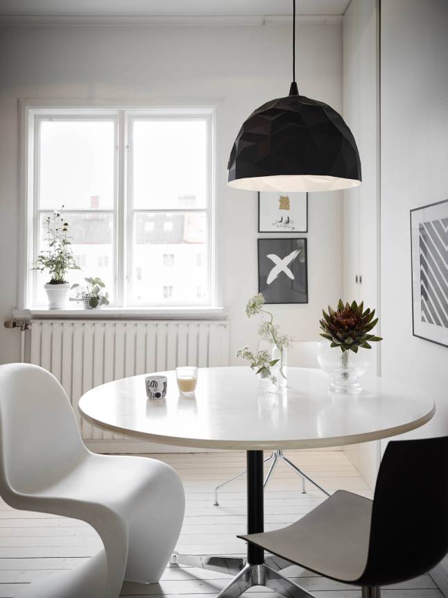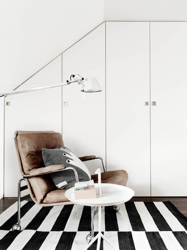 Este dúplex (aunque no lo parezca), se encuentra en un edificio de 1923, sus propietarios no han podido escoger un estilo y una paleta de colores más acertada. Piezas de diseño moderno, sin perder ese estilo nórdico que tanto me gusta, conviven con algún que otro objeto de estética vintage, como el estupendo sillón de cuero de la zona de estudio.