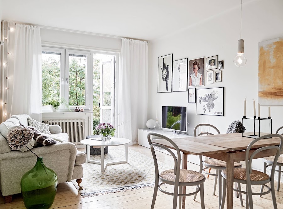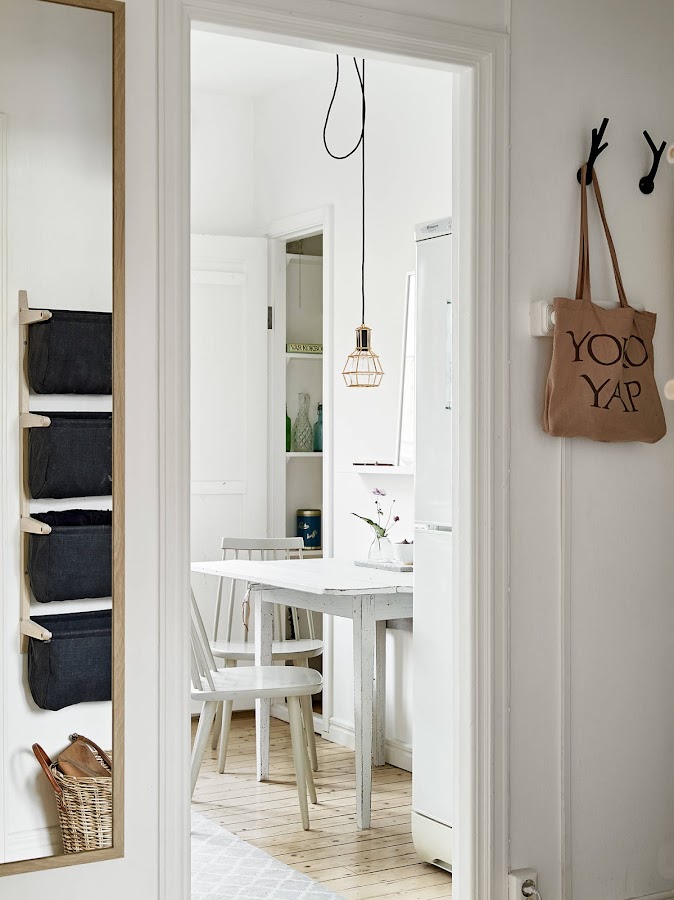 Me parece perfecta la mezcla que han realizado entre diseño nórdico y piezas vintage y el resultado tan femenino y delicado que han conseguido, el comedor con las sillas Thonet es ideal y el dormitorio principal en el que conviven una cómoda reciclada, la cama de Ikea y el vestidor realiado tan sólo con una barra y un par de estantes ha resultado ser una combinación ganadora.