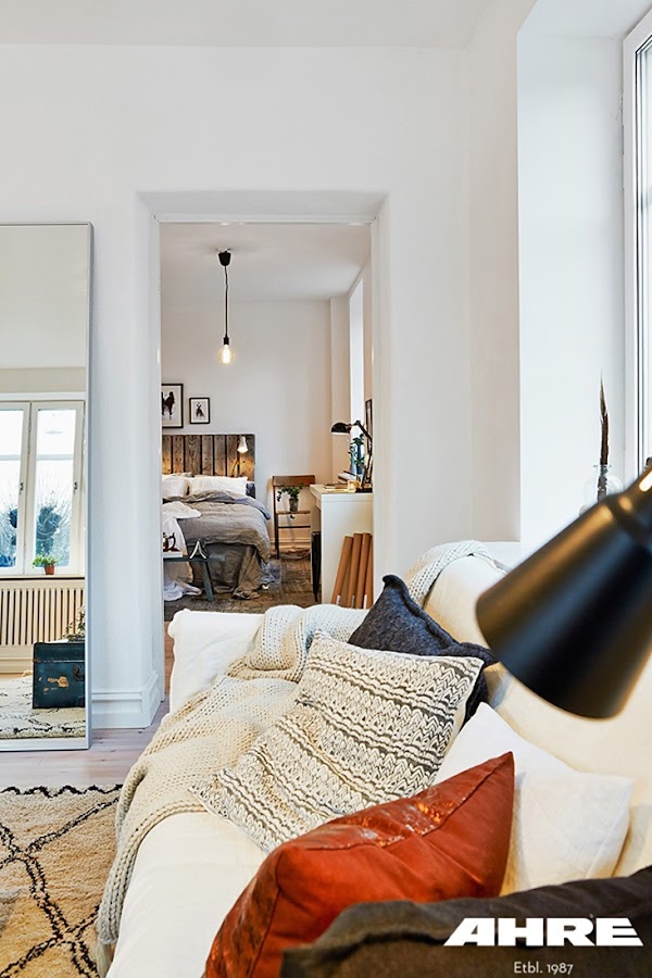 Un clásico de la decoración nórdica y más de las "casas de revista" es que nada está puesto al azar, aunque parezca que esté "desordenado" de forma natural, sobre todo en cuanto a textiles se refiere. No sé vosotros, pero yo cuando pongo la manta a propósito así como si la dejase tal cual tras usarla, realmente parece que no haya hecho la cama o me acabe de levantar de la siesta en el sofá. Vaya que hace el efecto de desorden total y aquí en cambio, me encanta como queda. ¡Qué rabia me da!