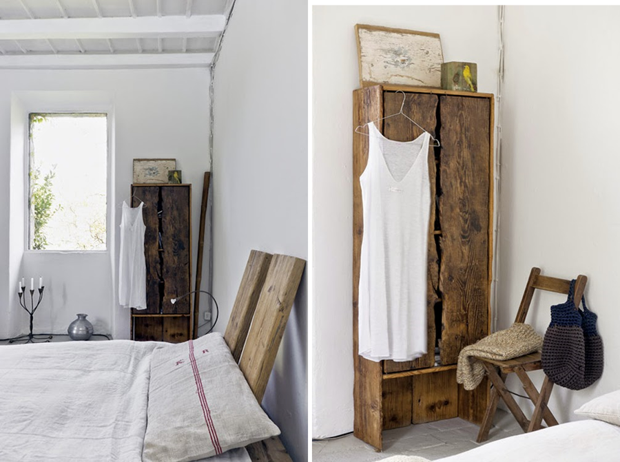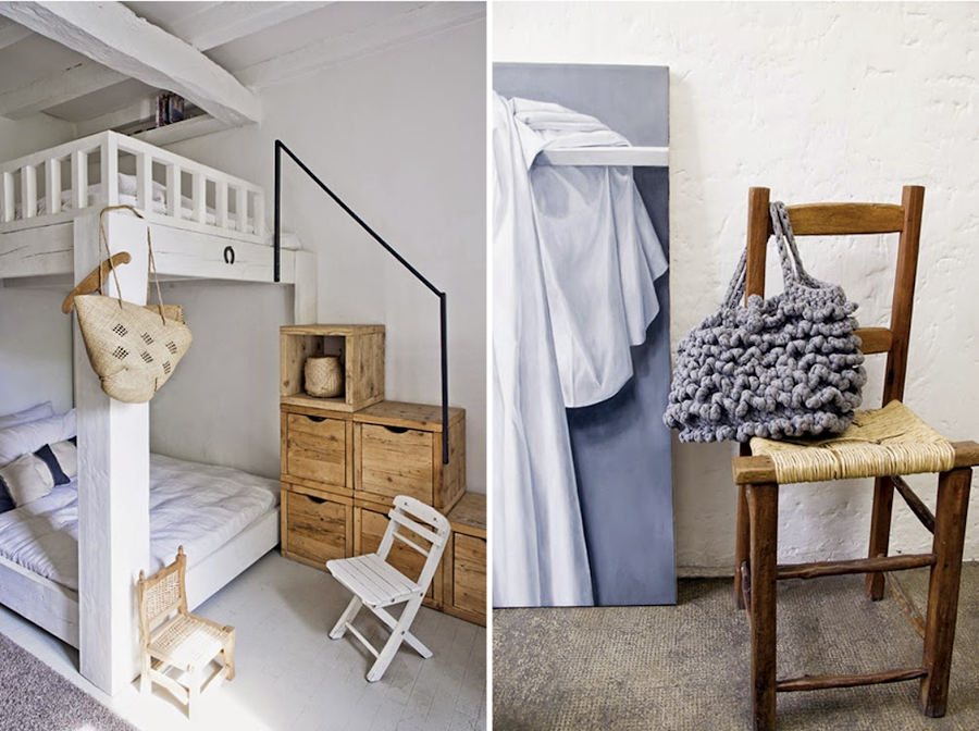 Para este domingo nos trasladamos a una casa de campo rústica con mucho encanto, donde los muebles antiguos de madera, paredes encaladas en blanco y suelos oscuros crean una atmósfera con una agradable sensación a paz y tranquilidad. Los capazos de mimbre y trapillo, las típicas sillas de madera, la vajilla, los textiles de lino y blanco algodón.....me hacen trasladar mis recuerdos a los días de infancia en los veranos en casa de mis abuelos.