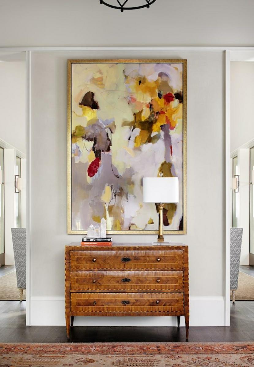 El estilo transicional se caracteriza por la utilización mobiliario tradicional. Los muebles de Luis XVI con líneas curvas entran en sintonía con piezas más vanguardistas de líneas rectas y simples. Se puede incorporar una mesa de centro con patas de hierro o mobiliario con vidrio. Hay que buscar un equilibrio cromático entre los muebles tradicionales y los modernos.Es un estilo elegante y los muebles reflejarlo. Se lleva muy bien con el arte abstracto y con el minimalismo. Un tándem perfecto serias una consola de líneas clásicas con un cuadro moderno.