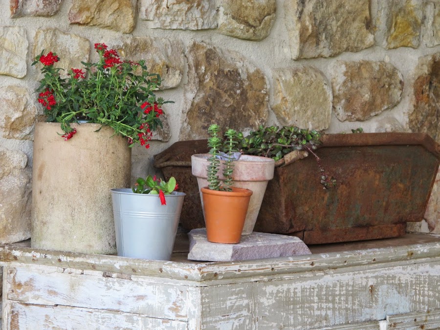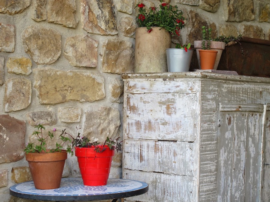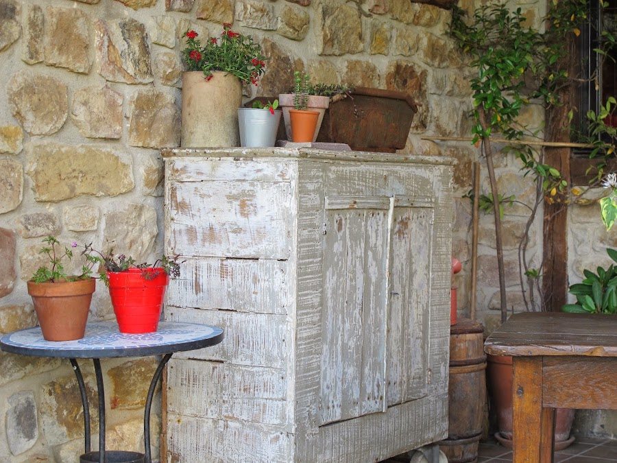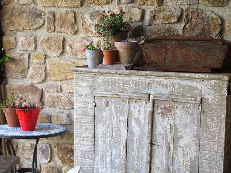 Hace unos cuantos meses, compré este mueble en un mercadillo de Francia , pensando en el porche de casa , para guardar los utensilios del jardín y colocar en el unas cuantas flores .... Por fin esta en su sitio , os gusta el resultado? yo estoy encantada! Feliz semana!