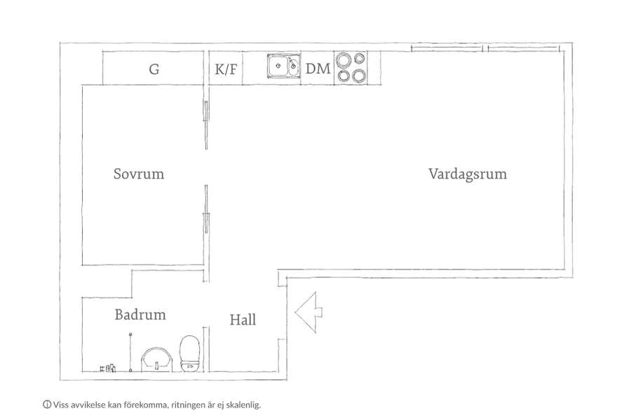 El tamaño de cuarto de baño es bastante grande teniendo en cuenta el piso, y se han separado el dormitorio de la cocina, que está abierta al salón con una bonita puerta corredera de dos hojas.