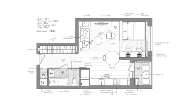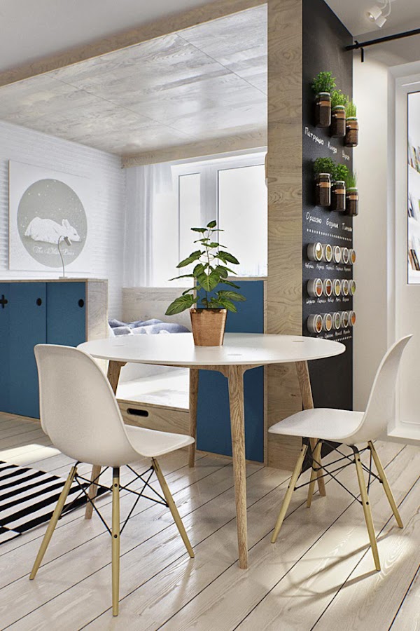 En este pequeño piso de Moscú, el equipo del estudio de INT2architecture se ha encargado de elegir los muebles a conciencia, evitando sobrecargarlo y consiguiendo que parezca mucho más grande de lo que en realidad es.
