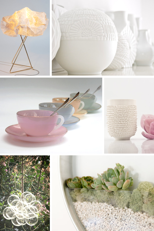 Porcelana, cristal, tela, estos son los materiales que hoy vemos en esto objetos. Y blancos, transparencias y un toque de pastel...