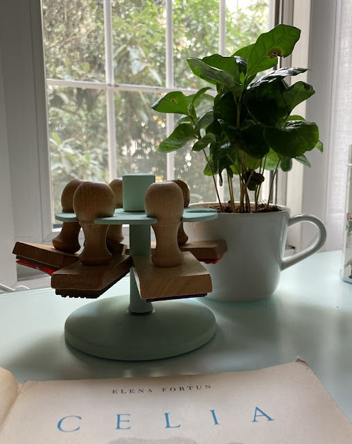 El porta sellos vuelve a realizar la función para la que fue creada, solo que las almohadillas y su destino tienen un fin bastante más lúdico y personal...