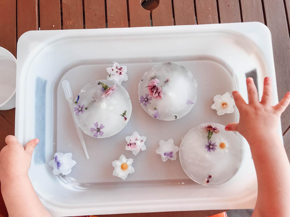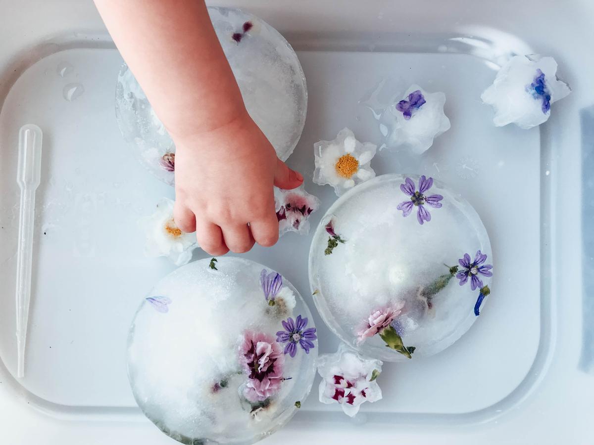 Con esta primavera tan poco primavera que estamos teniendo se me ocurrió la idea de “Primavera congelada” así que aproveché un paseíllo que nos hicimos y cogimos flores para prepararlo. Es importante que tengamos en cuenta los círculos; es decir, que todo tiene un por qué, hemos cogido las flores que servirán para algo en el futuro, en este caso una actividad, pero también podría ser para hacer un mandala, un jarrón, etc. También tenéis que tener en cuenta que necesitáis un par de días para preparar el hielo.