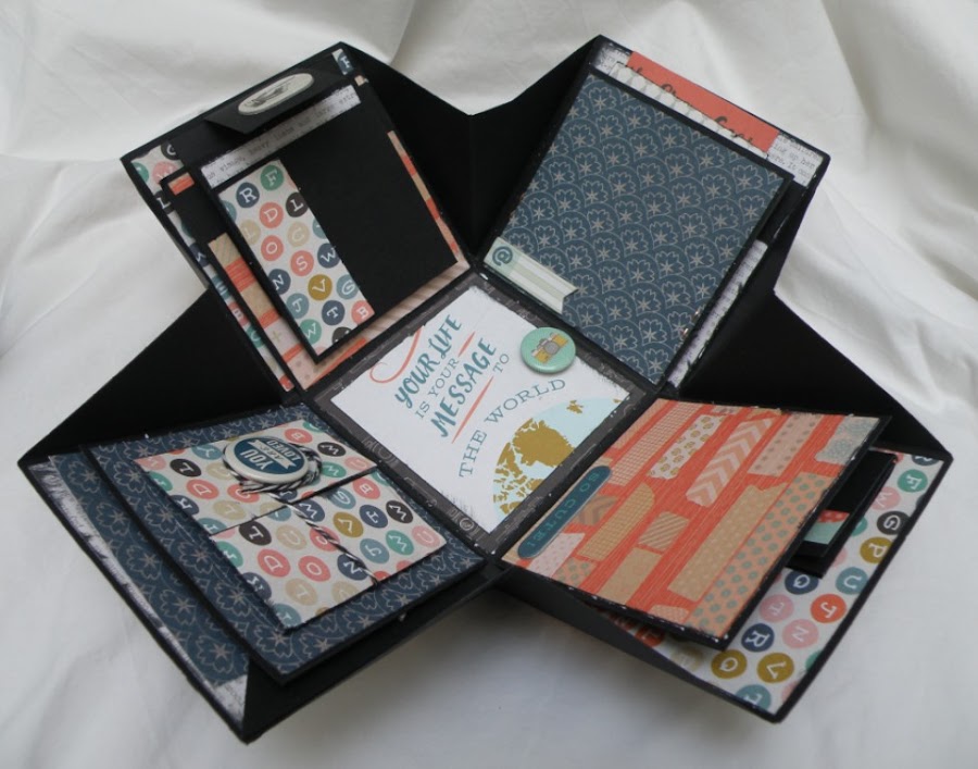 Aprovechando que el reto de este mes de Up&Scrap es crear una exploding box, os enseño la primera que hice. Es la que preparé para dar un curso en Abacus y enseñarla a hacer.