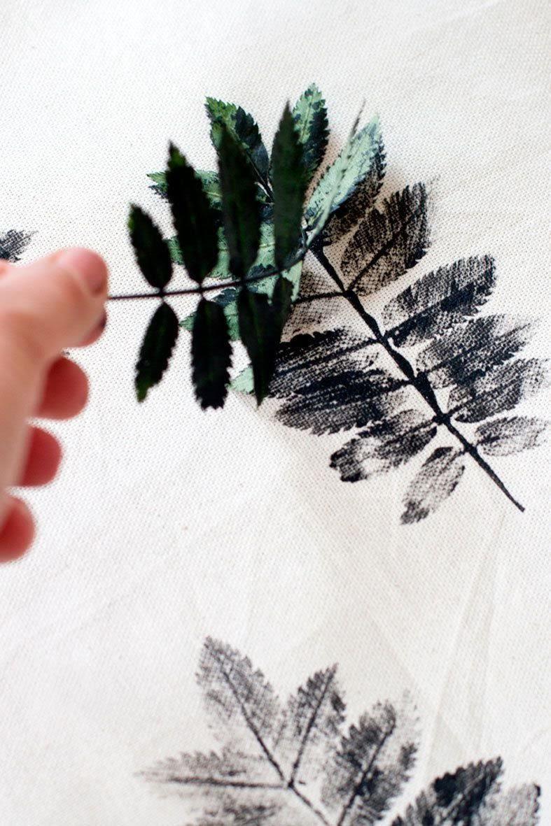 Una técnica sencilla y muy original. Consiste en utilizar las hojas como tampones que luego estamparemos sobre cojines, cartulinas, manteles o cortinas. Tú eliges. Es importante utilizar pintura especial para telas o, en su lugar, rotuladores de colores. Escoge las hojas que tengan los nervios más marcados para la estampación. ¡El resultado es increíble!