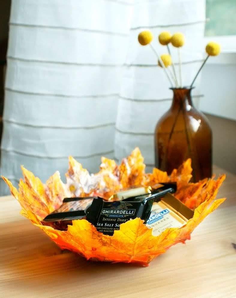 ¿No os parece original tener en casa un cuenco decorativo hecho exclusivamente a base de hojas secas? Pues sólo necesitas esto: