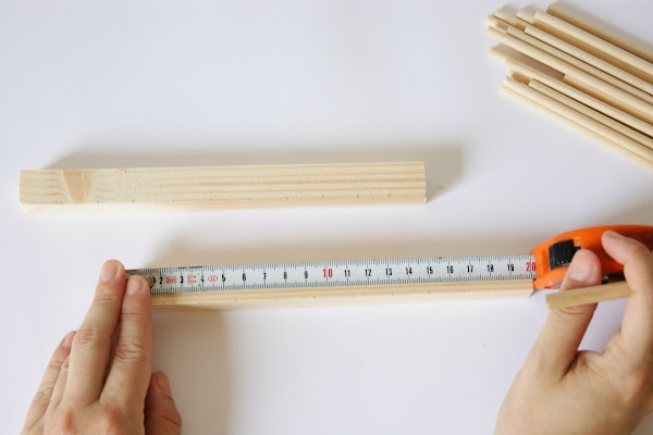 Con la ayuda del flexómetro (o metro), realiza marcas en los dos listones a 1.6 cm.
