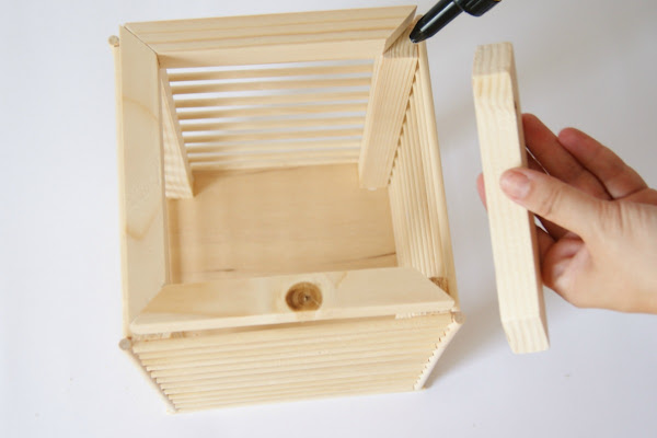El último paso consiste en embellecer la parte superior. Recupera los listones cuadrados