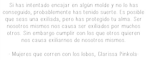 He dejado de buscar la aprobación de los demás. Quizás ahora otras personas no acepten como soy pero encajar en el molde de otros nos causa ser exiliados de nosotros mismos. Esta frase me encanta: