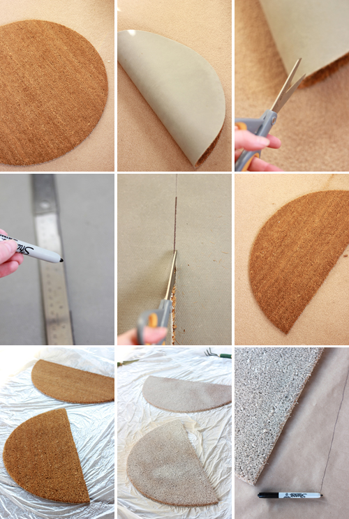 ¿Un felpudo redondo y un poco soso? ¡Tengo la solución! Partimos en dos y a darle alegría con el color. En esta ocasión, he encontrado en DIY en el blog Weekend Project.