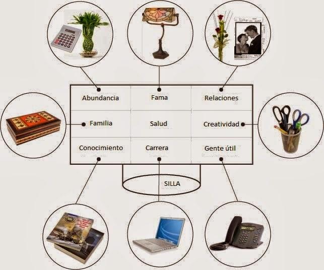 > Y por último... podrás hacer el Mapa Bagua de tu mesa de estudio, ¿de qué forma? te lo muestro a continuación a través de este dibujo: