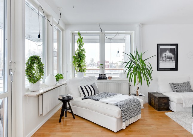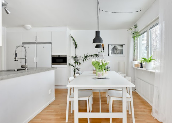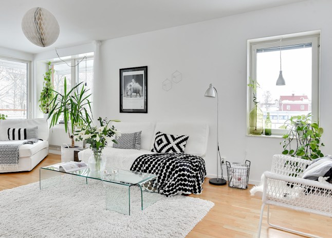 Blanco y negro: colores por excelencia del estilo nórdico, una pareja tan concurrida y usada que tiene tanto admiradores como detractores. Hay quien la califica como una decoración fría, con falta de calidez; sin embargo otros ven en esta pareja una combinación perfecta y un clásico con el que nunca fallas, que hace que tengas una casa atemporal. Sea como sea, en este ejemplo vemos un mix que funciona perfectamente y hay que reconocer que, combinada con madera, con la gama de los grisese en textiles y con mucos toques de verde natural, resulta más acogedora. Si os gusta el look deco, al fianl del post tenéis la selección de Fichajes Deco.
