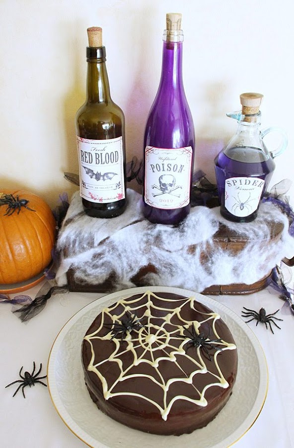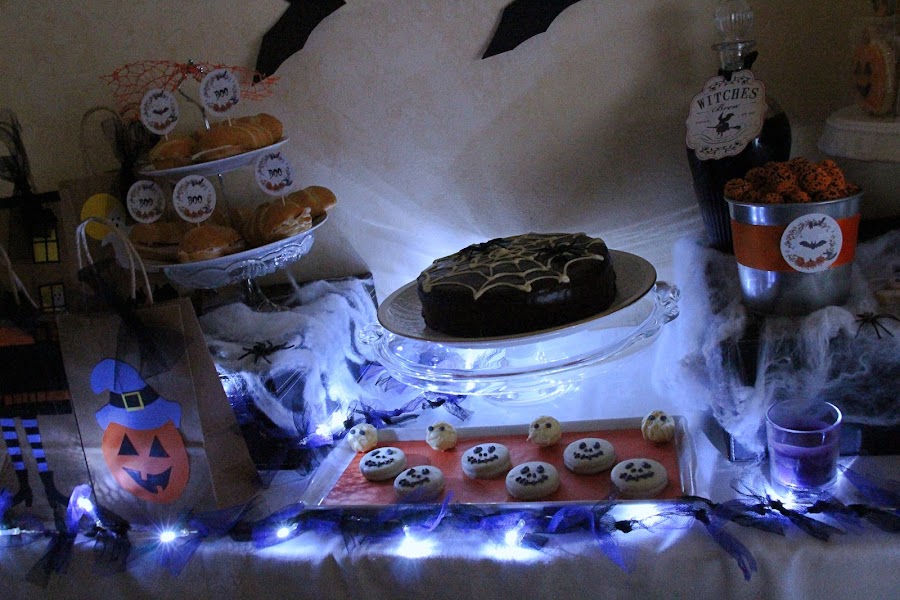 La tarta la decoré en forma de telaraña, ya os enseñé como hacerla aquí.