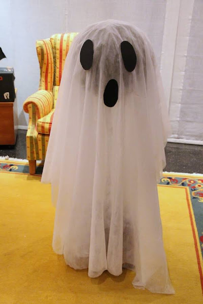 Para el fantasma gigante, puse la sábana cubriendo un árbolito que tengo de decoración, quedó la mar de resultón.