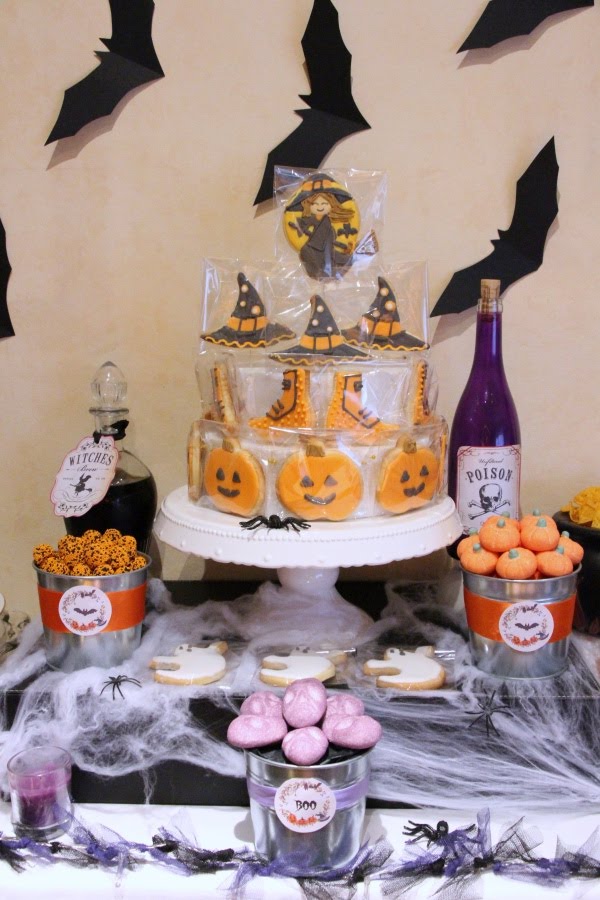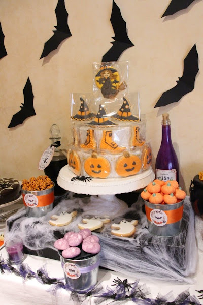 Una noche de brujas súper divertida, con una mesa dulce donde predominaba el naranja, el negro y algún toque lila, los colores típicos de Halloween.