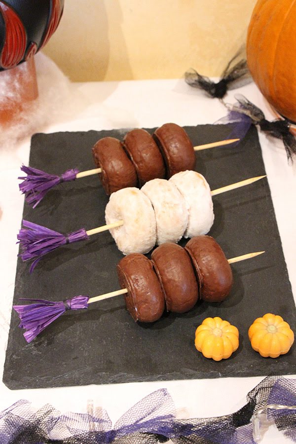 Y muy graciosos quedaron los donettes insertados en las escobas de brujas.