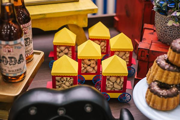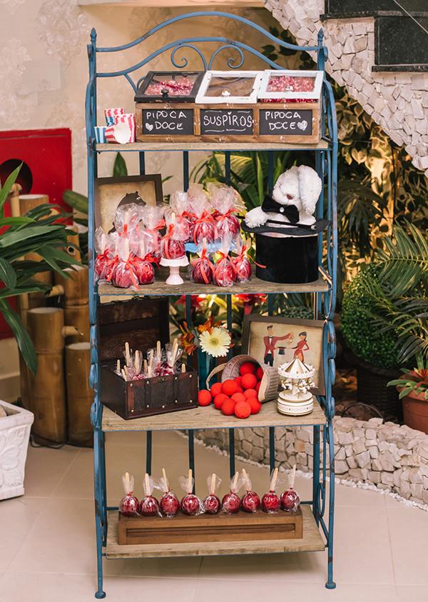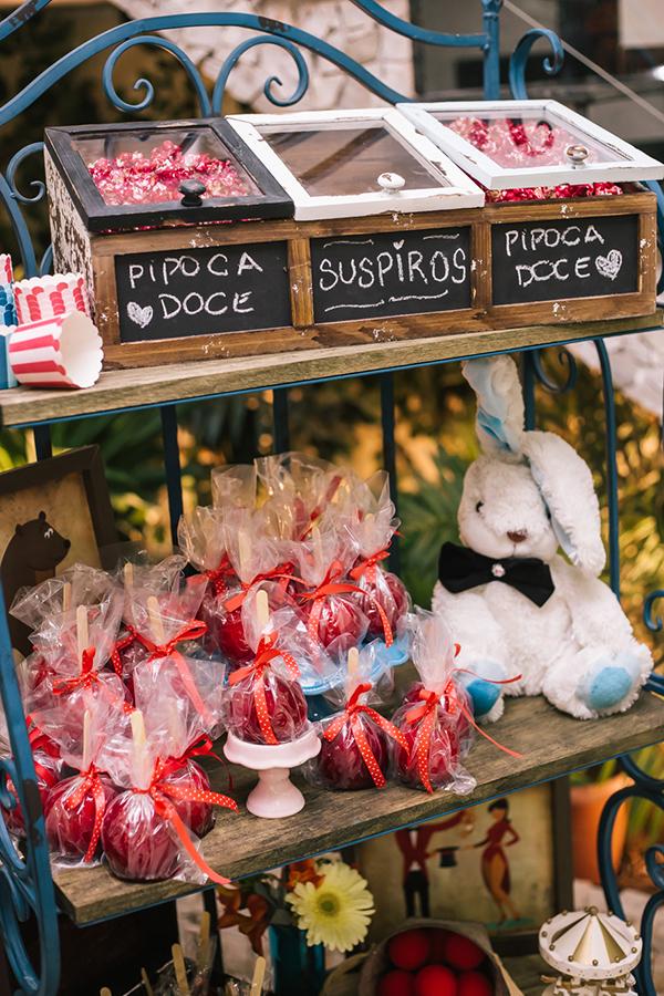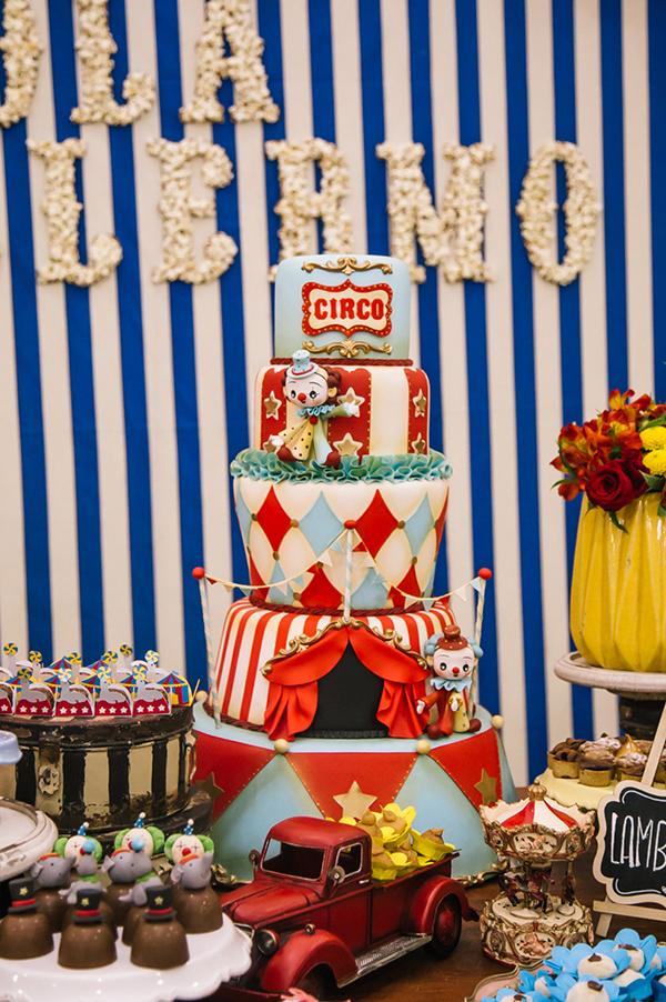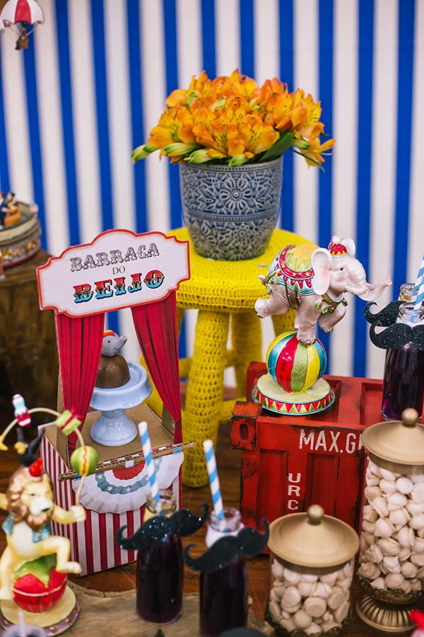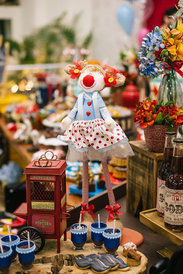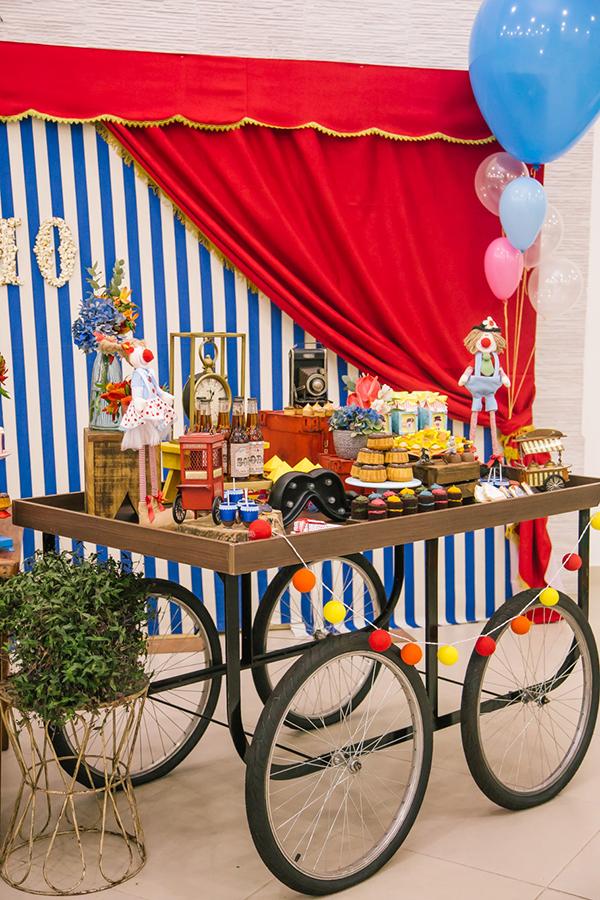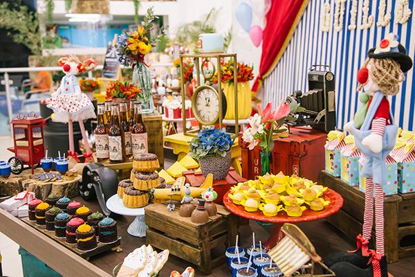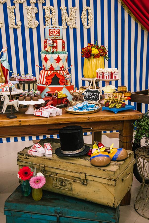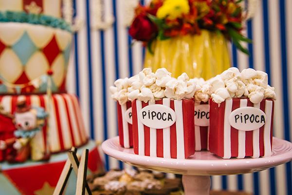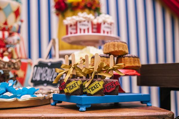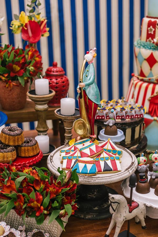 Colores: Los míticos del circo sin dudas son el rojo, el azul y el amarillo. En esta fiesta al tratarse del cumpleaños de unos gemelos y haber una niña, han puesto algunos toques en rosa, que yo considero totalmente innecesarios. Me gusta mucho el toque en dorado!