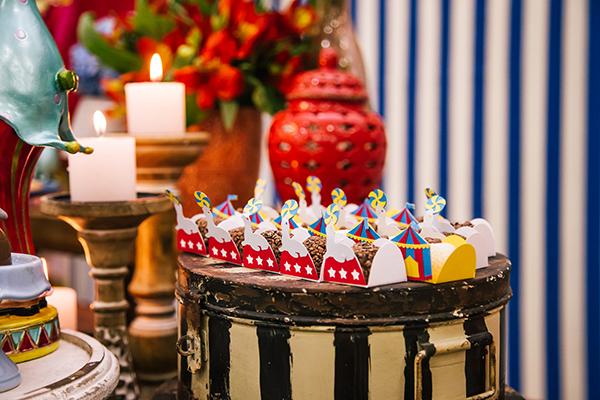 Regalos de invitados: A quién no se le ocurren mil regalos diferentes en este tema? Desde un marco con un animalito de circo para los más pequeños, un disfraz, un carrusel, un payaso, una cajita de circo con chocolates, un elefante, una foca, un león, etc, hasta una maletita vintage llena de chuches.