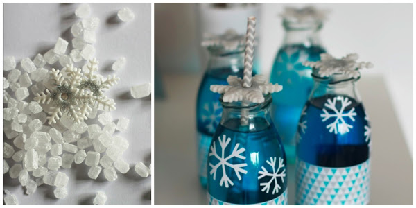 Ahora podremos unos cristales de azucar desparramados por la mesa (se venden en tiendas especializadas de repostería) imitando trozos de hielo, unos pinguinos por aquí y por allá y unas pajitas de chevron tan bonitas como las de la foto, y lo dicho ... una fiesta de cumpleaños inolvidable.