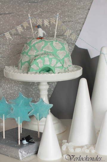 ¡Impresionante la tarta de cumpleaños con forma de iglú! Y las piruletas de caramelo... ¡lo más!.