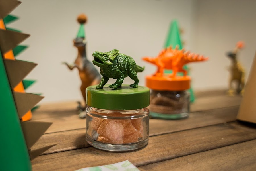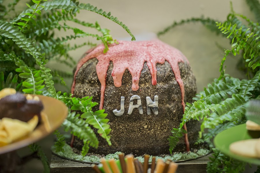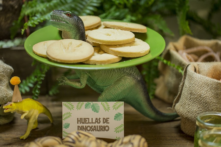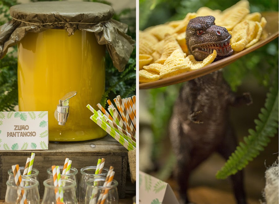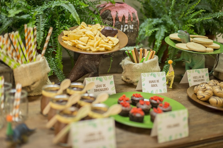 Platitos de Azúcar se encargó de los dulces y preparó un menú super original: Galletas Huellas de Dinosaurio, Volcanes, Uñas de Dinosaurio, Lodo de Chocolate, Babas de Lima, Zumo Pantanoso, Huevos Fosilizados, Ramas de Árbol y Rocas de Chocolate.