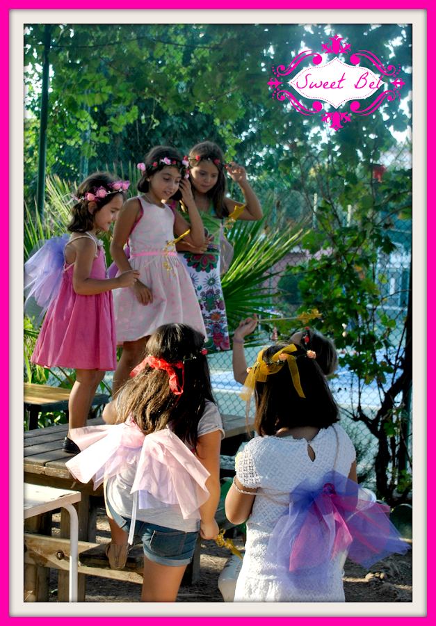 Prepare varitas, coronas, alas y hasta le pedí a mis amigas las hadas del bosque unos frasquitos de polvo de hadas ( de esos para pedir deseos) jajajaja.