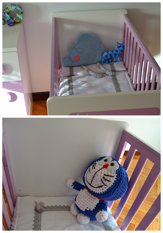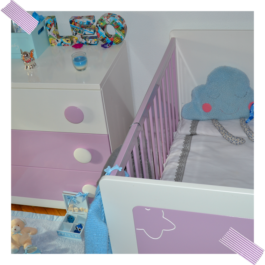 María me ha dejado fotografiar el dormitorio de su pequeño Leo, para ella no hay mayor tesoro. El mobiliario se resume a una comoda XL y una cuna en un color muy apropiado para los dormitorios infantiles. El blanco y lila casan perfectamente con el azul de los pequeños detalles que tienen los textiles, complementos y accesorios del bebé.