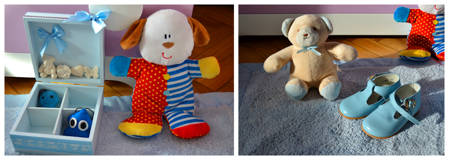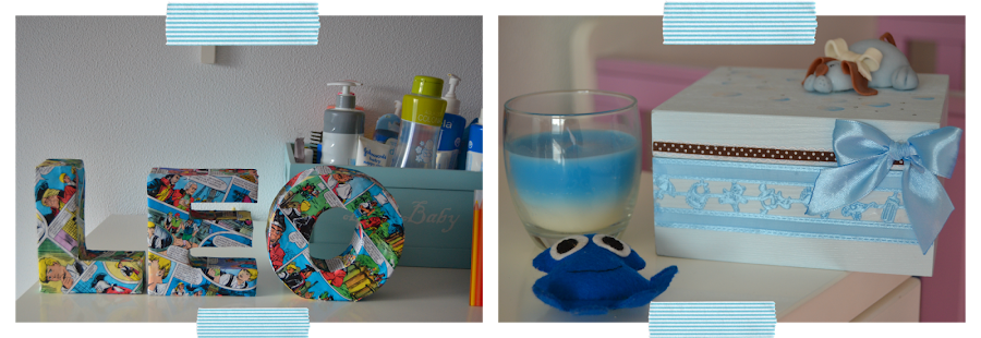 Los muñecos de trapo, las letras de su nombre están hechos por la abuela de Leo, a la vista está que es una artista.