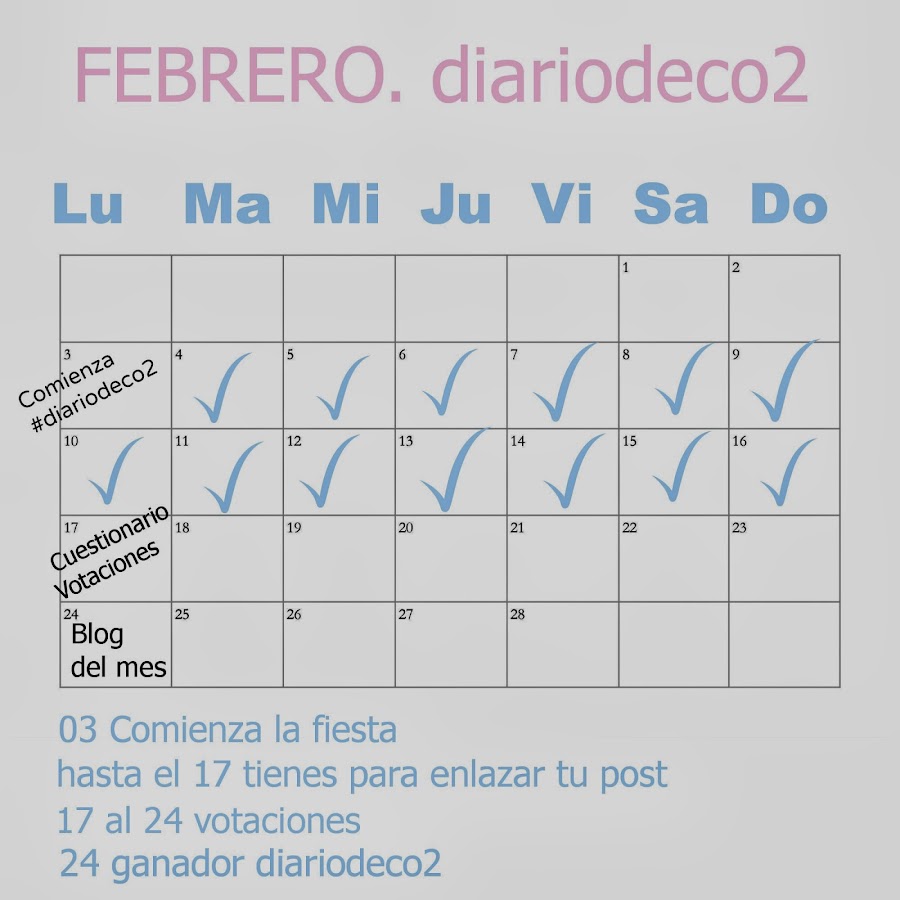 6. el día 24 ATENTO, Se publicará el tema que hayáis elegido para marzo, y se nombrará el ganador #diariodeco2. Aquí ganador diariodeco1.