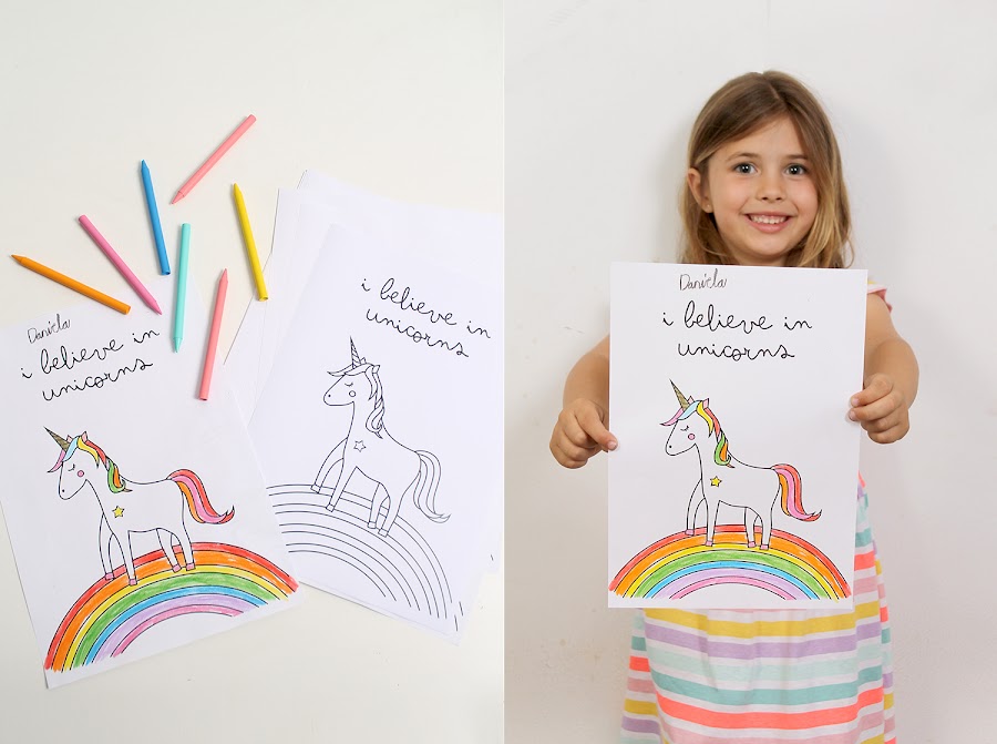 Para que los niños estuvieran entretenidos les puse una mesa con actividades varias: plastilina de colores, dibujos para colorear y tatuajes temporales de unicornios y arcoiris (todo un acierto!!)