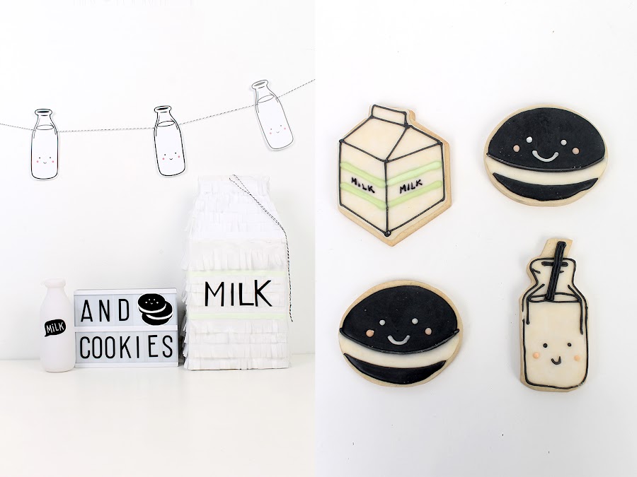 Las galletas y leche son cosas que todo niño (y no tan niño) suele tomar para desayunar o merendar, por eso son ideales para fiestas!