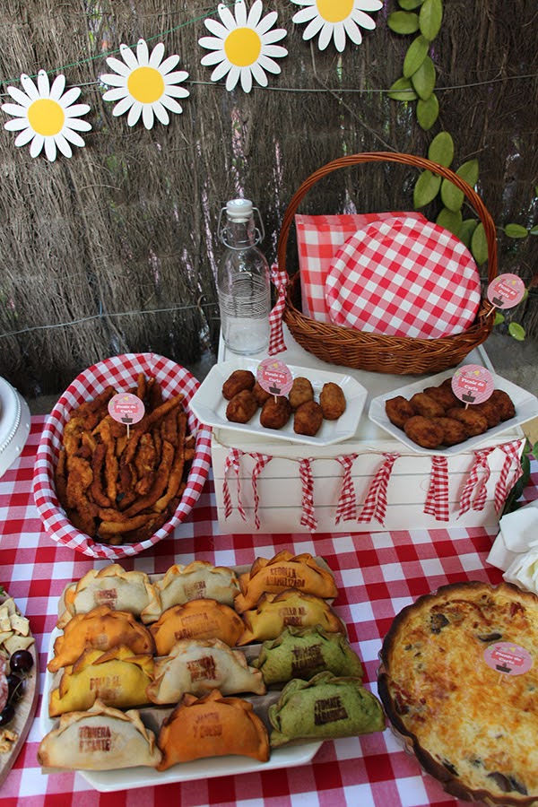 En una fiesta picnic tiene que haber comida que te la puedas comer de manera fácil, como las croquetas, empanadas (en este caso argentinas), finger de pollo, quiche, bocadillitos...