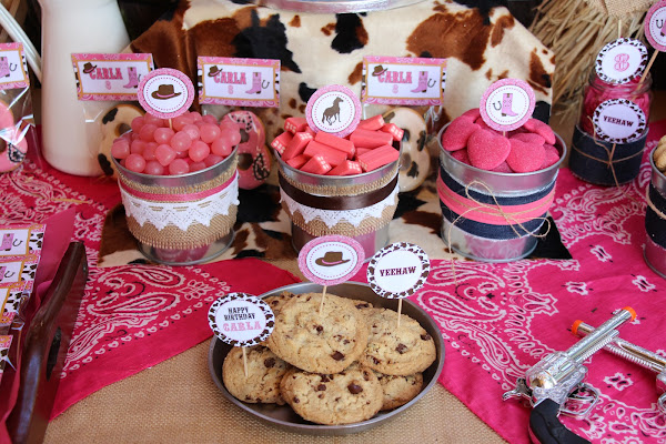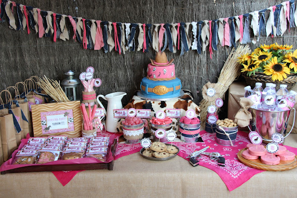 Ya dentro del rancho, una mesa dulce esperaba a los cowboys y cowgirls, un mesa de estilo rústico con aires del oeste.