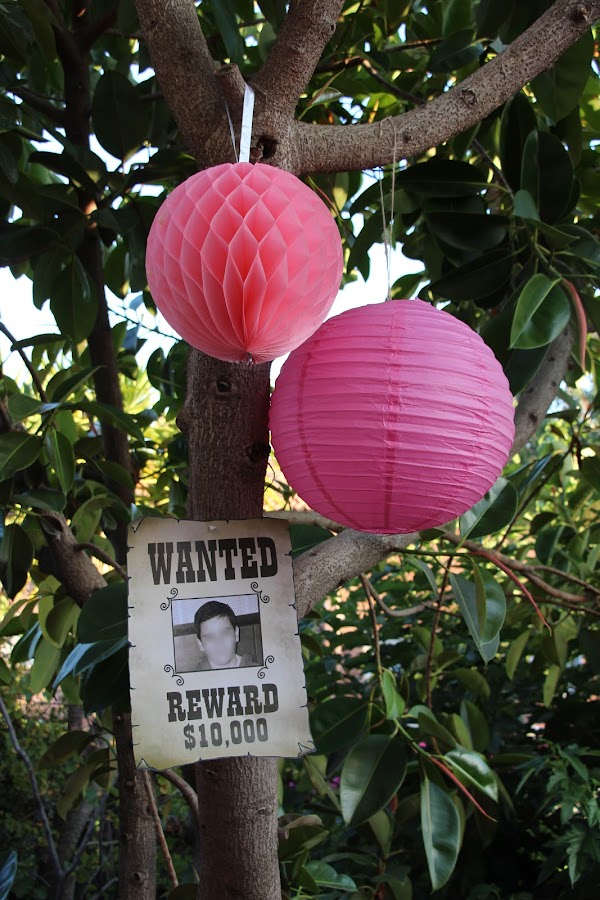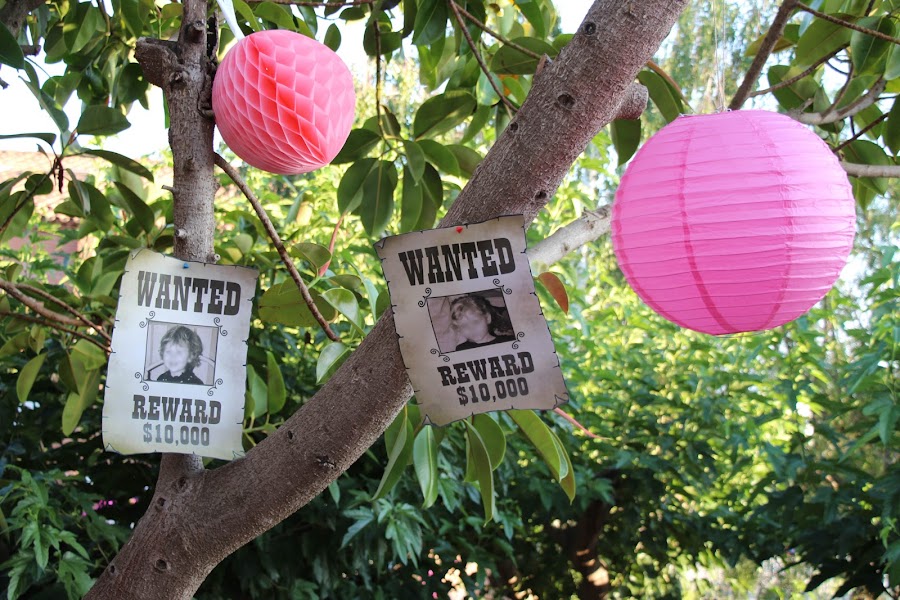 De decoración, hice carteles SE BUSCA con las fotos de todos los niños, quedaba muy gracioso Se buscan vaqueros y vaqueras para la fiesta!!! (He desenfocado las caras de los niños porque no acostumbro a publicar fotos de ellos). Podéis descargaros el cartel de WANTED aquí
